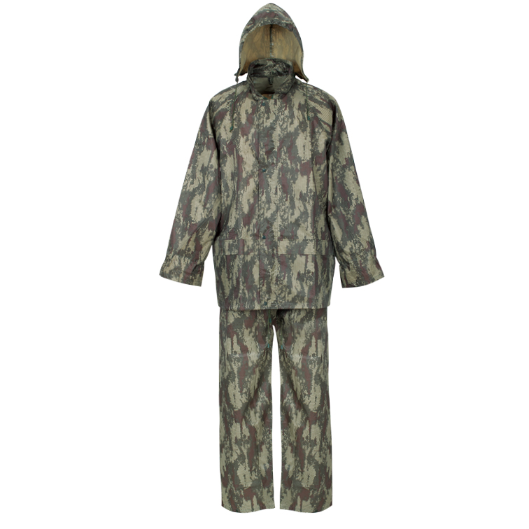 Constructed from heavy-duty 170T polyester with a specialized PVC coating, this suit creates an impenetrable barrier against rain, snow, and wind while moving silently through the woods. Unlike cheap plastic rain gear that crinkles and reflects light, our matte-finish camouflage fabric absorbs sound and breaks up your silhouette for complete concealment. The true-to-life camo pattern blends seamlessly into various environments, whether you're in dense timber, marshland, or open fields.