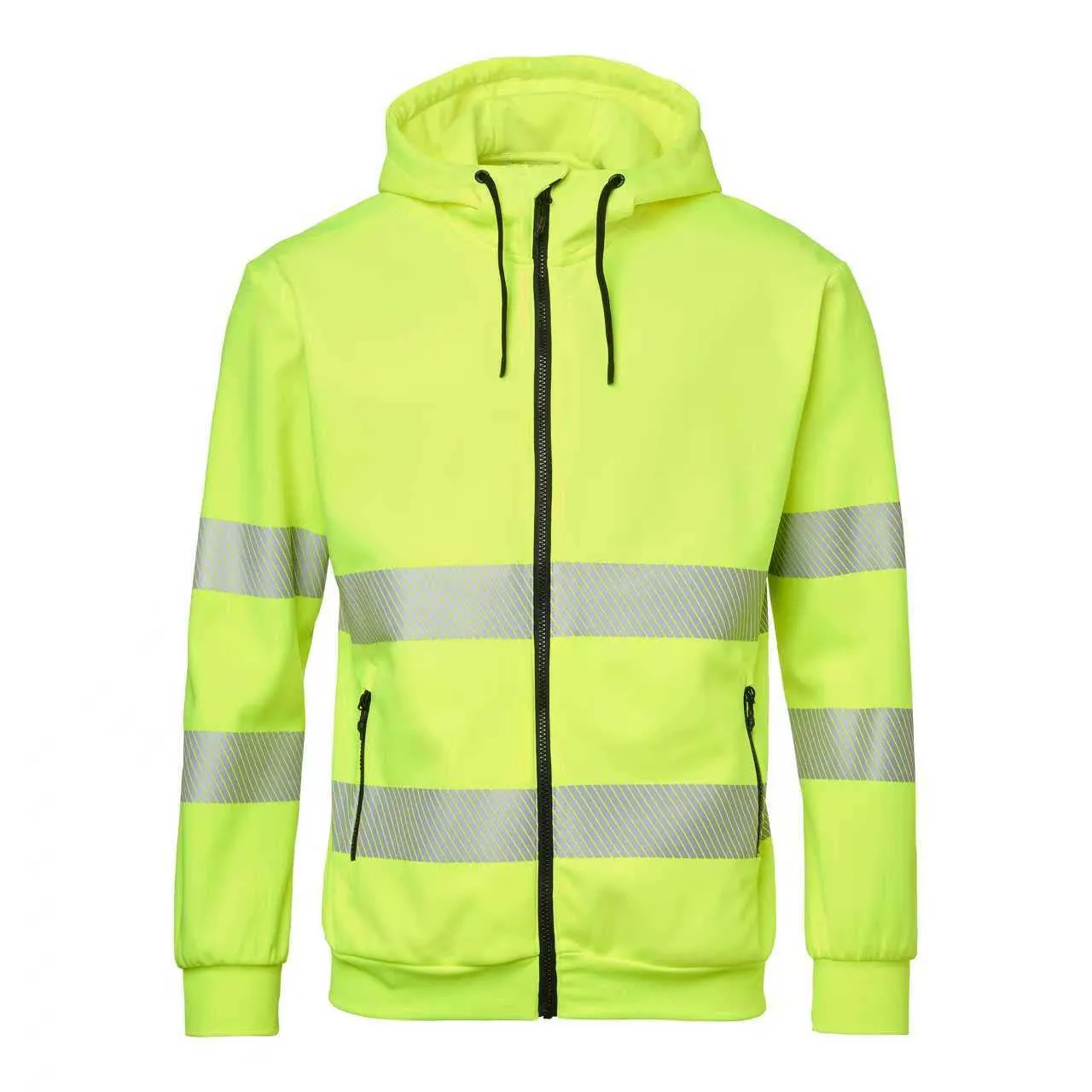 NEW STYLE DM002G High-visibility sweatshirt 300gsm with hood,full zipper, with segmented reflective details for increased visibility,equipped with two front pockets.