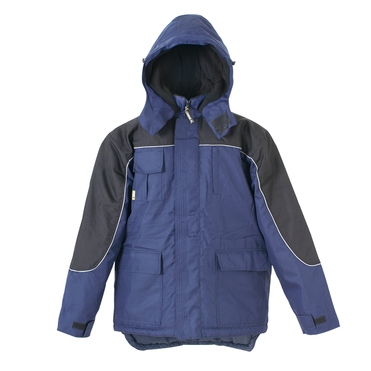 Ample storage is a key feature: the parka is equipped with multiple functional pockets including large front flap pockets, chest zipper pockets, internal compartments for valuables, and hand-warmer pockets lined with soft fleece. These pockets allow workers to carry tools, phones, notebooks, gloves, or personal items securely and within easy reach.