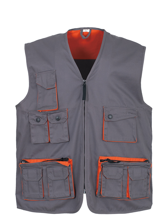 The DM542 represents a new philosophy in protective workwear - safety features that work without announcing themselves. The high-vis orange lining provides immediate conversion to safety wear when needed, while subtle reflective elements are woven directly into the grey fabric structure. The vest's tear-resistant construction follows fail-safe patterns that maintain integrity in demanding conditions, with strategically placed breakaway points that prevent entanglement hazards. This is protection through thoughtful engineering rather than obvious add-ons.